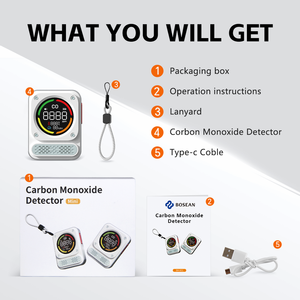 BOSEAN BH-X01 ABS เครื่องตรวจจับก๊าซคาร์บอนมอนอกไซด์ LPG CO สำหรับใช้ในบ้านและครัว เซ็นเซอร์เคมีไฟฟ้า ระยะตรวจจับ 10-20 เมตร แจ้งเตือนเมื่อเกิน 10%