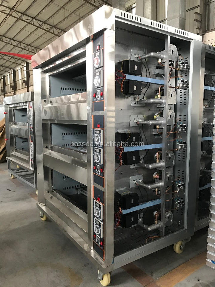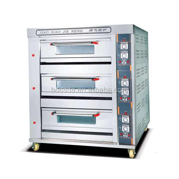 BOSSDA เชิงพาณิชย์ใช้3ดาดฟ้าก๊าซเค้กขนมปังเบเกอรี่เตาอบสำหรับขายเตาอบมาตรฐาน