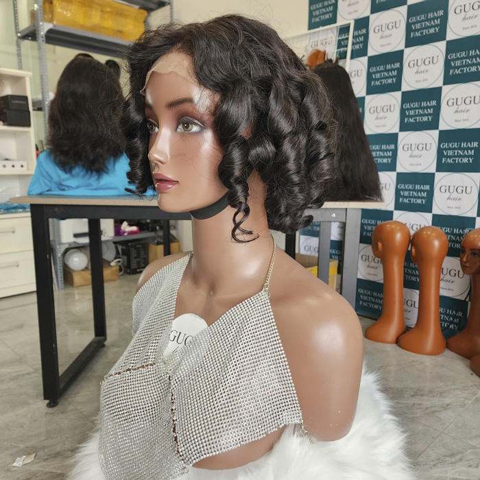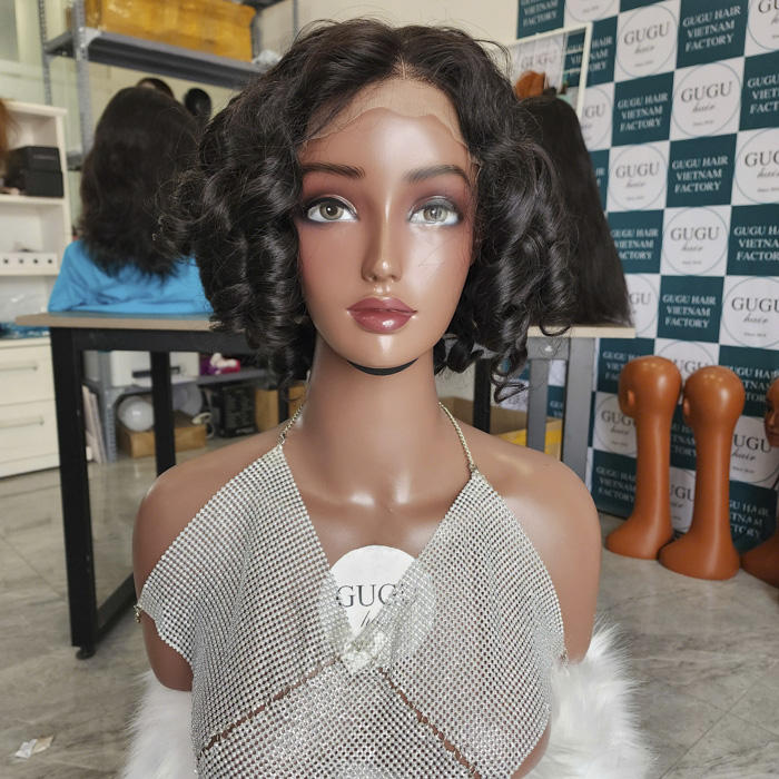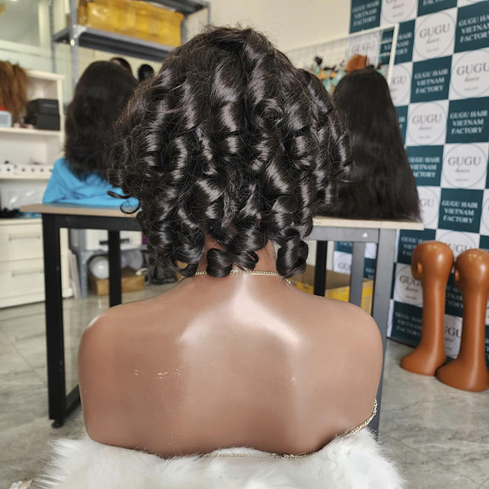 Bouncy ผมหยิก10นิ้วลูกไม้เวียดนามวิกผมบริสุทธิ์ของมนุษย์ใส/HD ลูกไม้250% สองชั้น