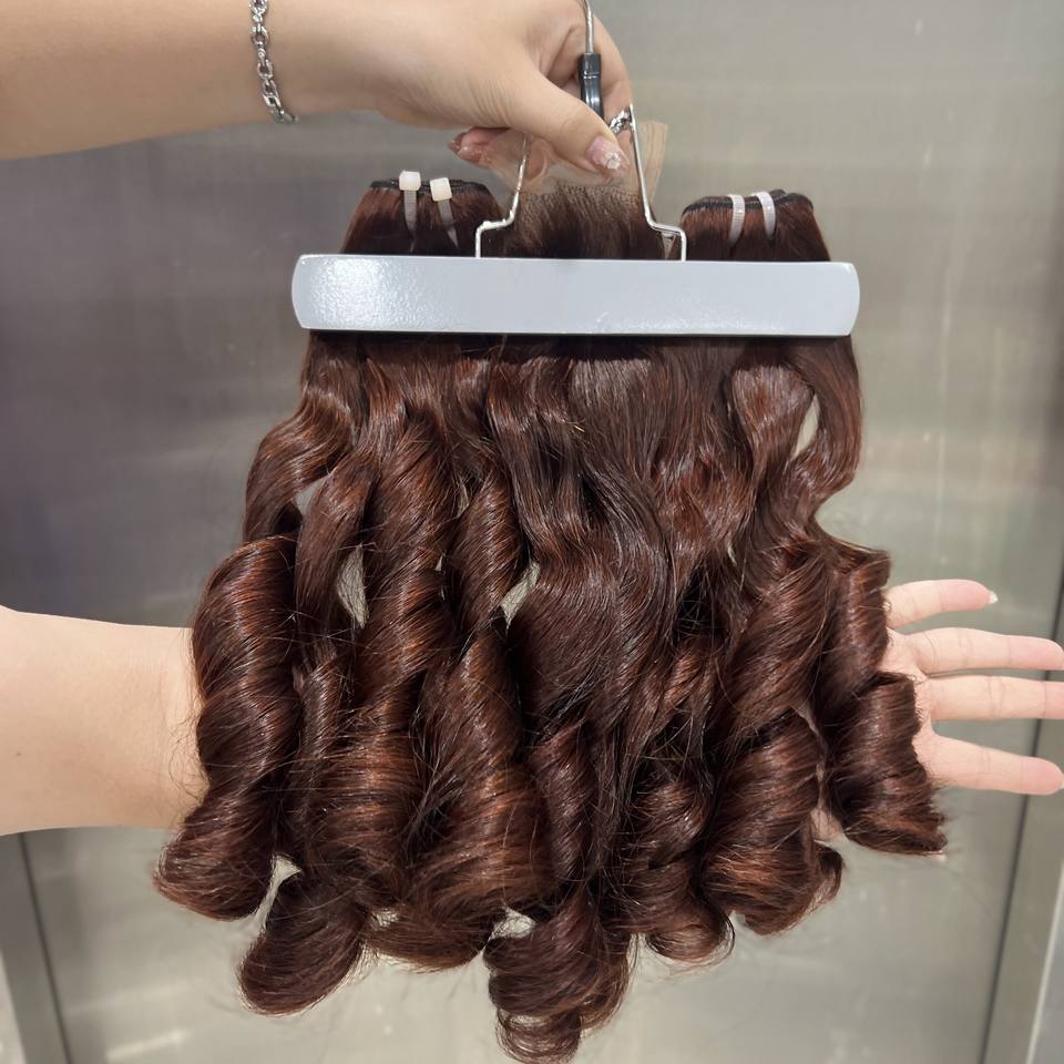 ผมต่อแบบมนุษย์ผมหยิกฟูเรมีแบบคู่3มัดปิดด้านหน้า