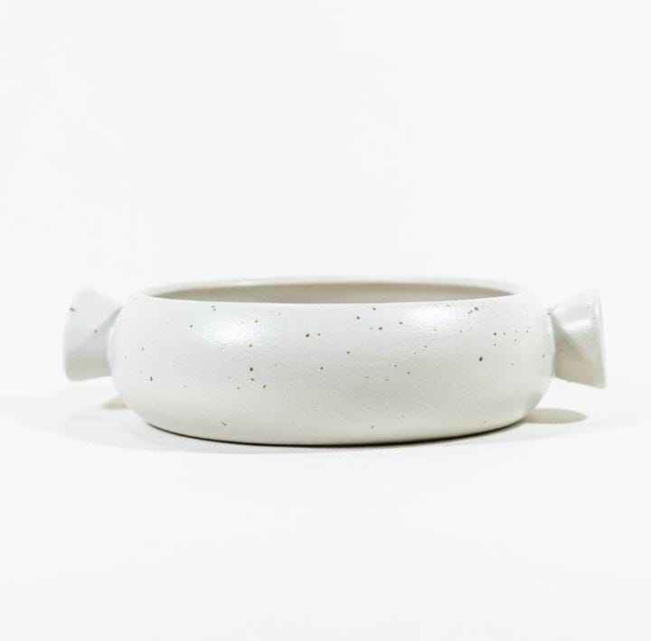 ชามสองหูจับสีขาวสีดำจากประเทศอินโดนีเซีย