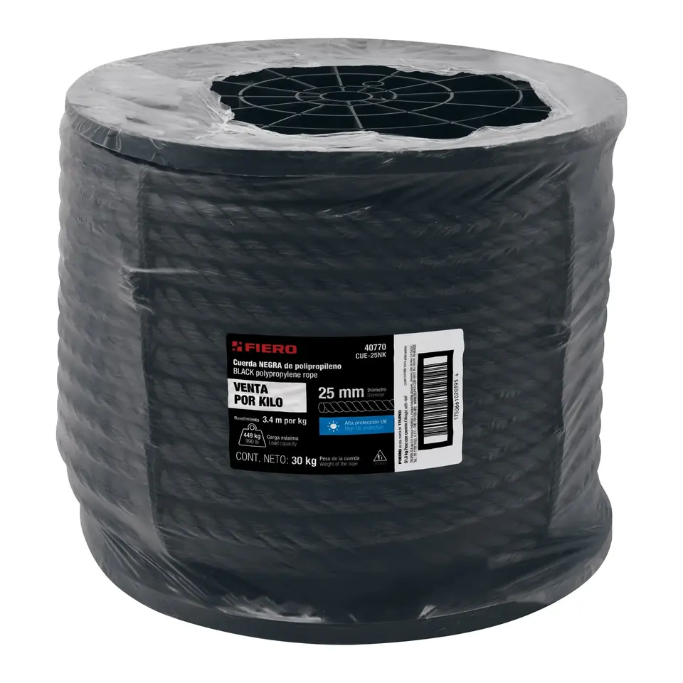 กล่อง 30 กิโลกรัม เชือกโพลีโพรพิลีนสีดำ ขนาด 25 มม. ม้วน 30 กก.
