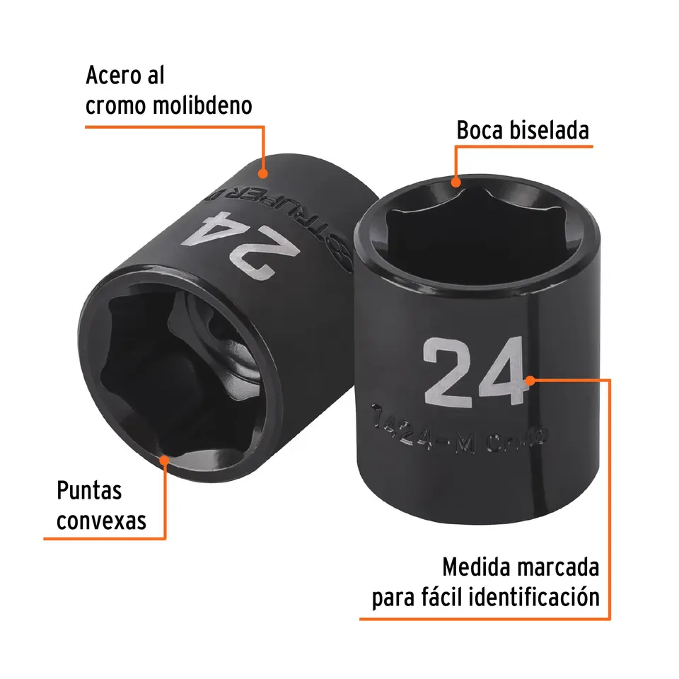 บ็อกซ์ 6 ซ็อกเก็ตกระแทกขนาด 24 มม., 6 จุด, ขับเคลื่อน 1/2 นิ้ว, TRUPER
