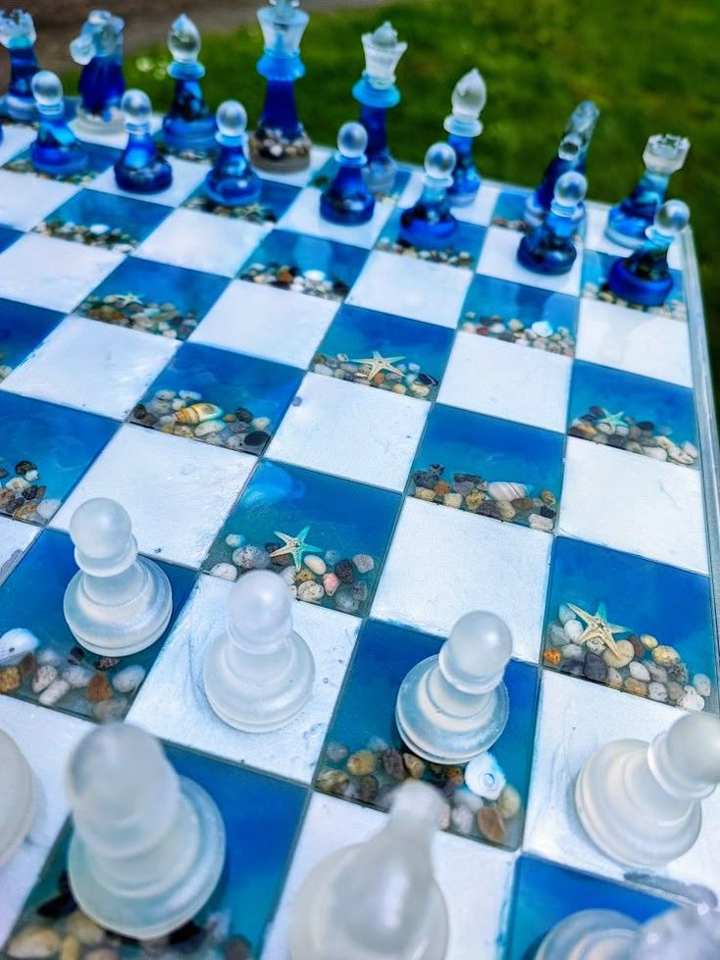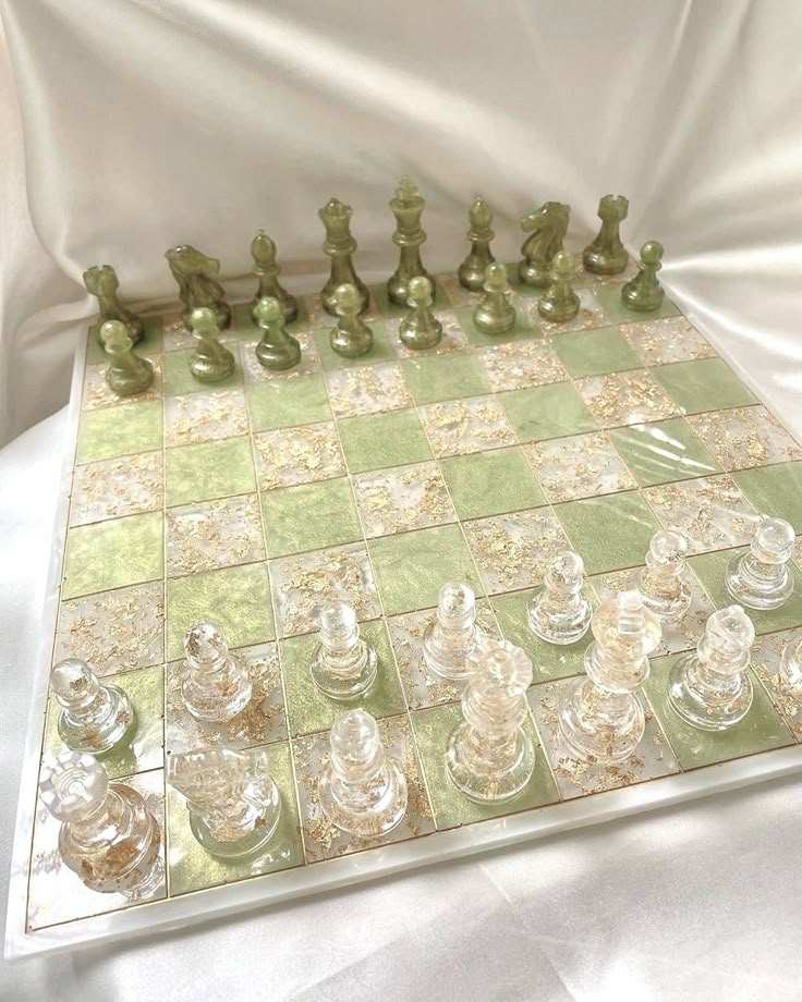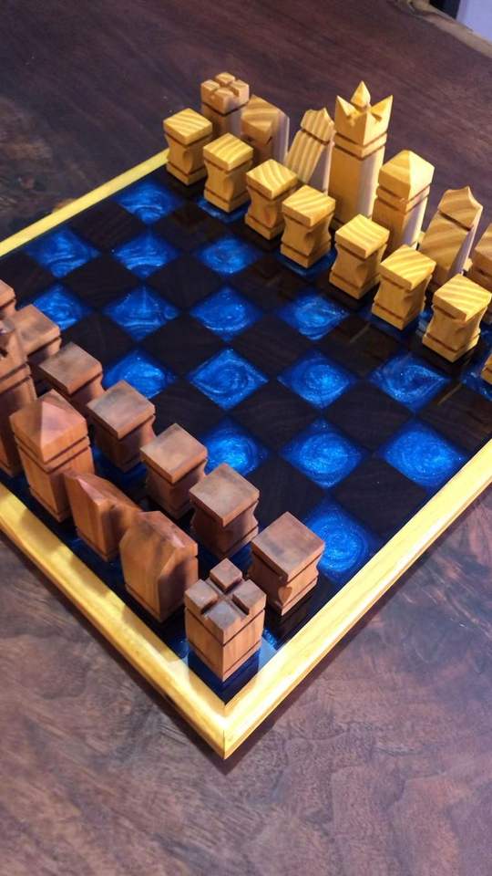 กล่องหมากรุกไม้และเรซินกล่องหมากรุกชุดเกมสุดหรูทำจากเรซิ่นสีแดงสีดำชิ้นหมากรุกโดยหัตถกรรม tayyab
