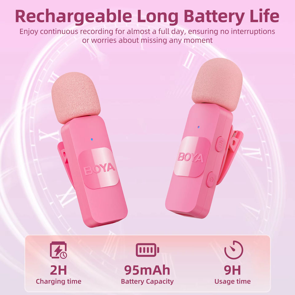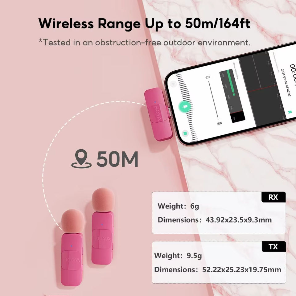 Boya ไมโครโฟนไร้สายแบบหนีบหนีบหนีบไมโครโฟนไร้สายขนาดกะทัดรัดแบบ BY-V-P สำหรับสมาร์ทโฟน