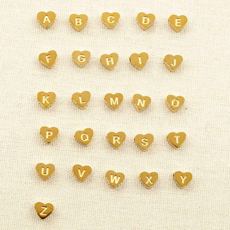 จี้รูปหัวใจ BOYI 26 ตัวอักษร สีพีช หัวใจแบบเจาะรู สแตนเลสสตีลเคลือบสูญญากาศ ไม่ซีดจาง ขัดเงาแบบกระจก สำหรับงาน DIY