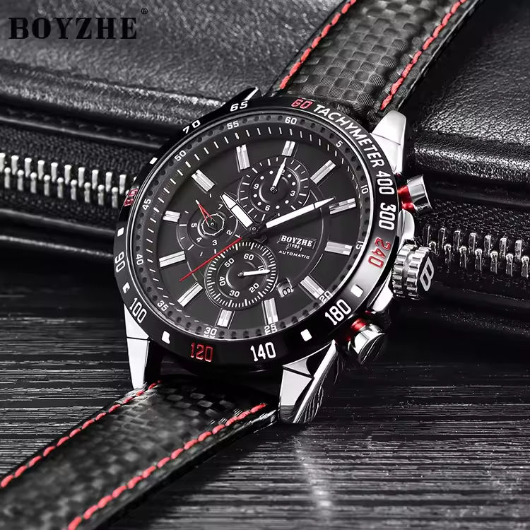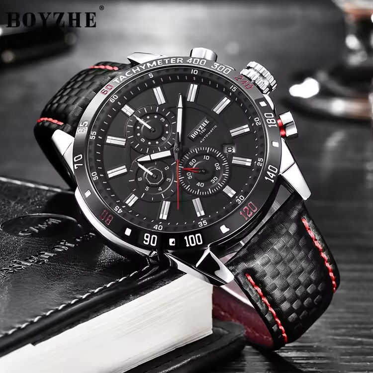 นาฬิกาข้อมือหนังแท้ผู้ชาย รุ่นคลาสสิก WL012P ยี่ห้อ BOYZHE Factory รับผลิตแบบ OEM พร้อมสลักโลโก้ตามสั่ง