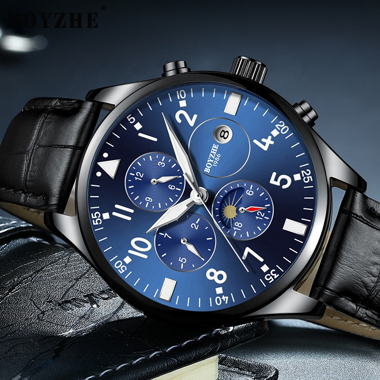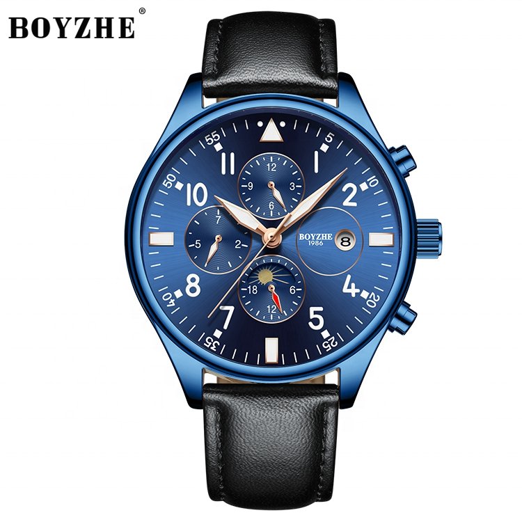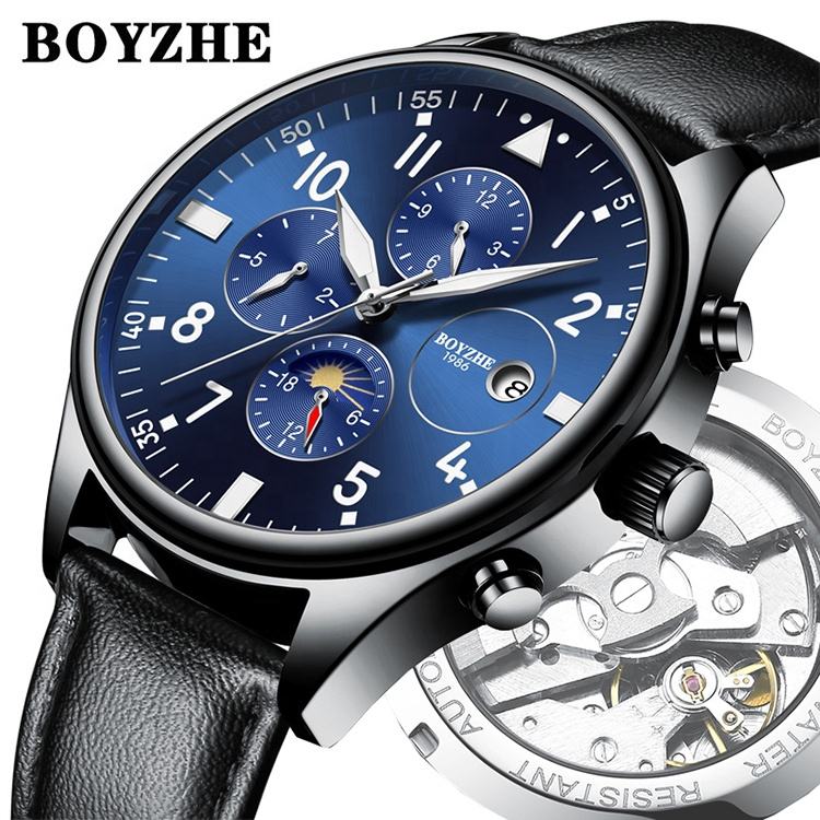 นาฬิกาข้อมือผู้ชาย BOYZHE จัดส่งเร็ว ขายดี นาฬิกาจักรกลสุดหรู สายหนัง พร้อมบริการดรอปชิป
