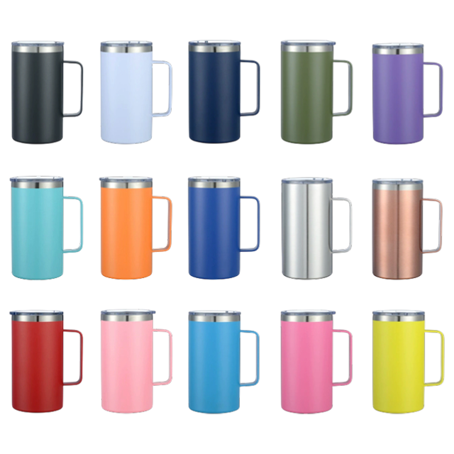 แก้วน้ำสแตนเลสขนาด 24 ออนซ์ ปราศจากสาร BPA พร้อมหูจับ แก้วน้ำเก็บความร้อนสุญญากาศแบบพกพาพร้อมฝาปิด สำหรับแคมป์ปิ้งและใช้ในออฟฟิศ