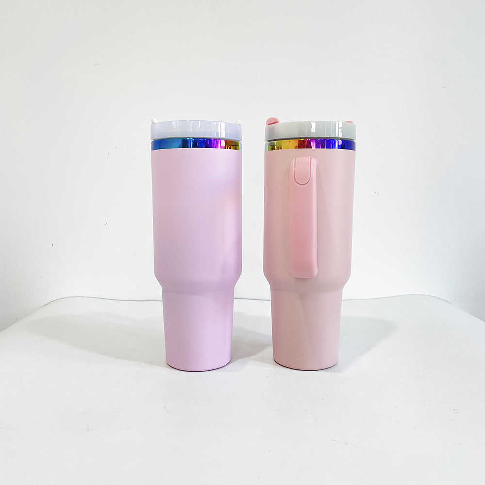 แก้วทัมเบลอร์ชุบสีรุ้ง40ออนซ์พร้อมหูจับสำหรับวันวาเลนไทน์ขนาด40ออนซ์สีชมพูม่วงชุบรุ้งสำหรับงานแกะสลักเลเซอร์