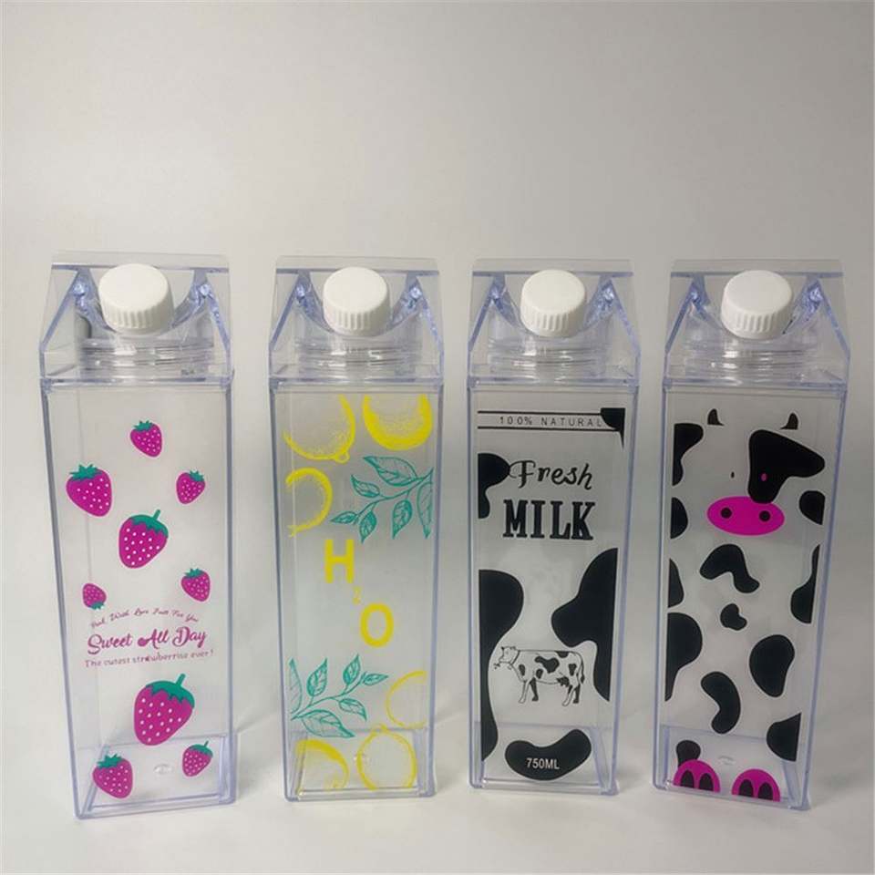 กล่องนมอะคริลิคใสทรงสี่เหลี่ยม ขนาด 500 มล./1000 มล. ปลอดสาร BPA ใช้ซ้ำได้ สีสันสดใส ป้องกันการรั่วซึม เหมาะสำหรับงานปาร์ตี้