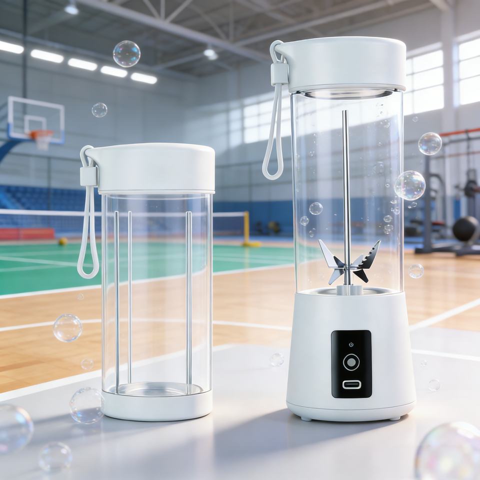 ปราศจากสาร BPA เกรดอาหาร เสียงเบา 400 มล. 2-in-1 ใช้ในรถยนต์ กลางแจ้ง ฟิตเนส ใช้แบตเตอรี่ โหมดเทอร์โบ ชาร์จผ่าน USB-C ป้องกันการรั่วซึม เป็นมิตรกับสิ่งแวดล้อม ทำน้ำแข็ง