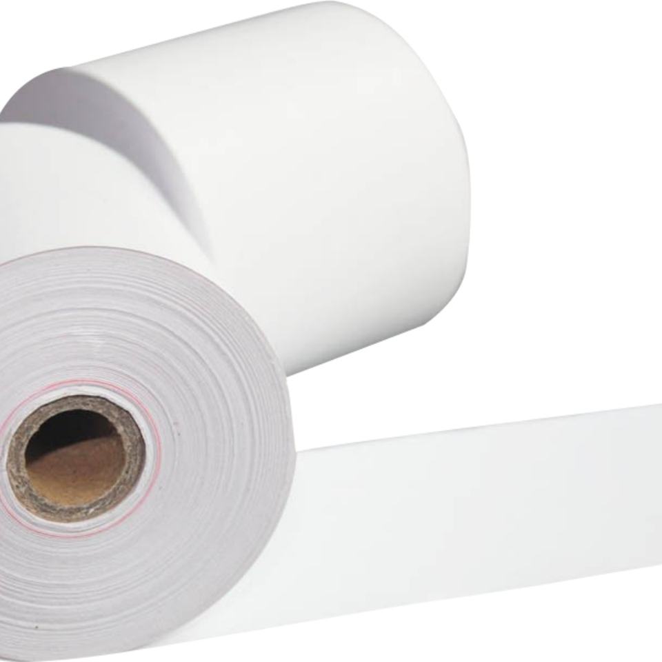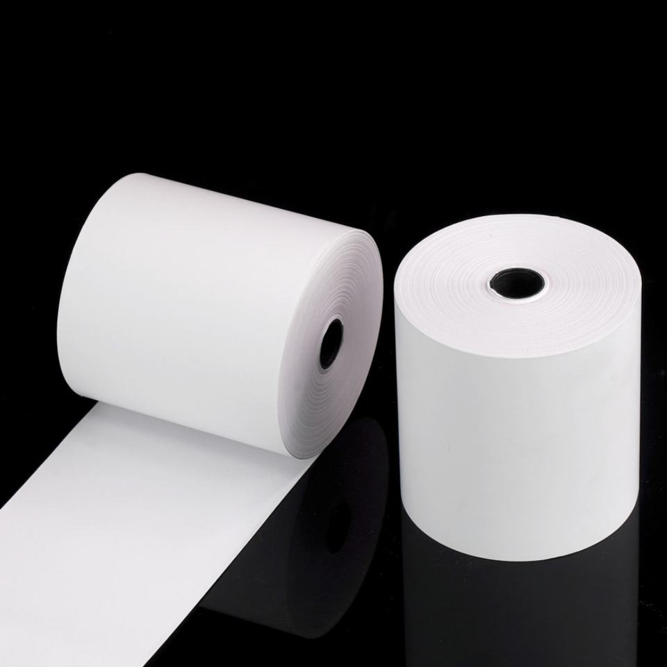 กระดาษความร้อนสองชั้น ปราศจากสาร BPA ผลิตจากเยื่อไม้บริสุทธิ์ 100% ได้รับการรับรองสำหรับอุปกรณ์ POS ซูเปอร์มาร์เก็ต