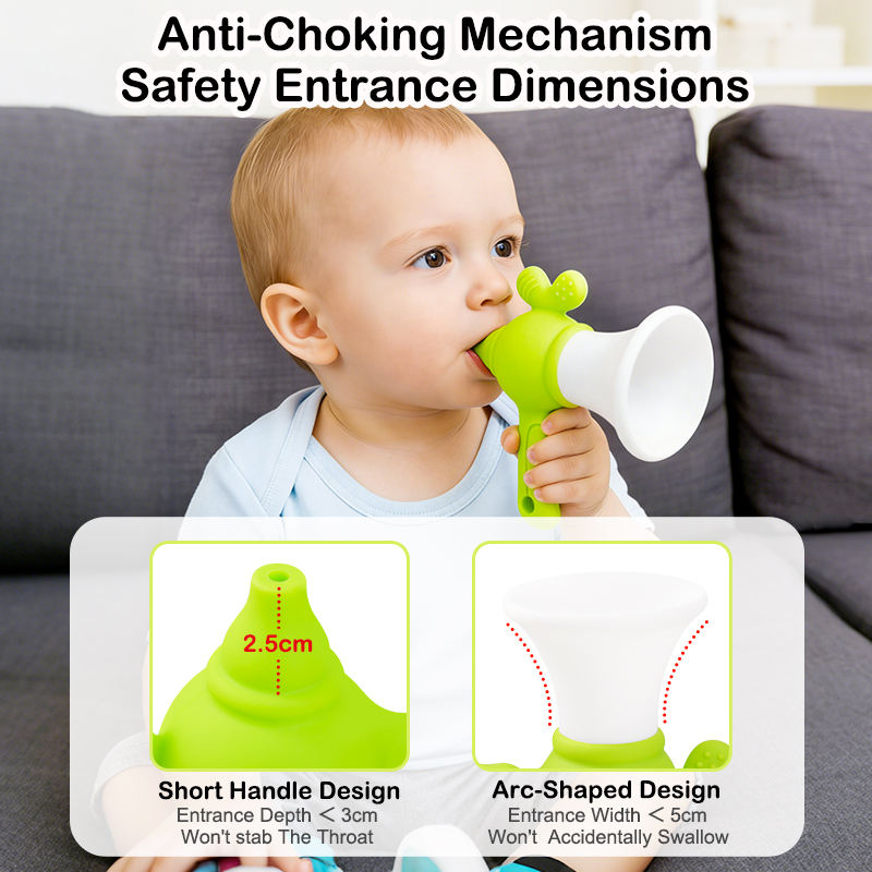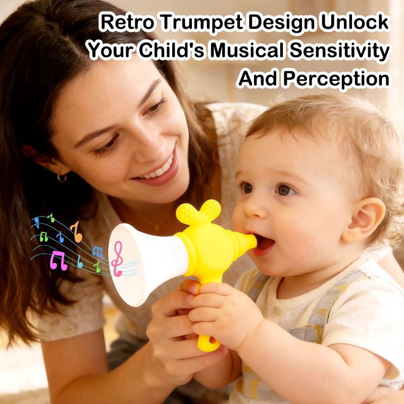 เครื่องดนตรีเสริมพัฒนาการสำหรับเด็ก ปลอดสาร BPA ของเล่นเป่าลมรูปแตรสำหรับเด็กอายุ 0-24 เดือน