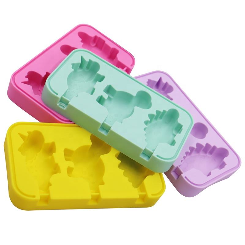 แม่พิมพ์ไอศกรีมซิลิโคนปราศจากสาร BPA สำหรับเด็ก,แม่พิมพ์ไอติมรูปไดโนเสาร์แบบ Diy พร้อมแท่งไม้ใช้ซ้ำได้