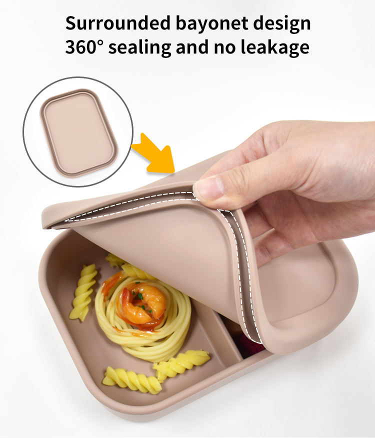 กล่องข้าวซิลิโคนฟู้ดเกรดเป็นมิตรกับสิ่งแวดล้อมกล่องอาหารกลางวันไมโครเวฟกันรั่วซึมสามช่องสำหรับเด็กไปโรงเรียน