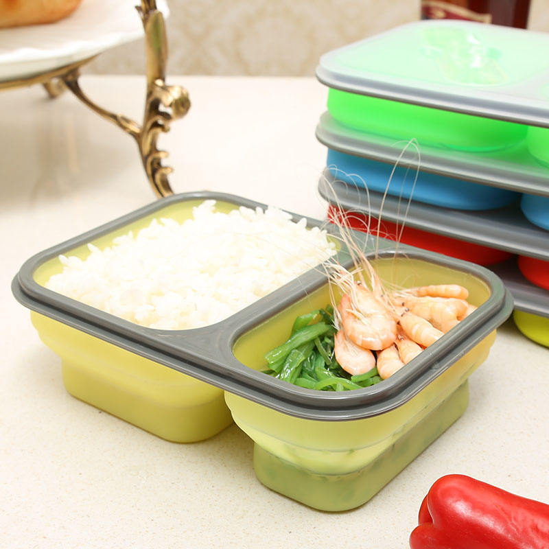 กล่องซิลิโคนใส่อาหารปราศจากสาร BPA ภาชนะสำหรับเตรียมอาหารพร้อมช้อน