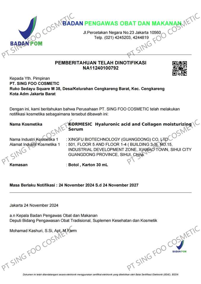 ใบรับรอง:Cpnp, scpn, msds, CN, การรับรอง bpom และการทดสอบอื่นๆตามต้องการ