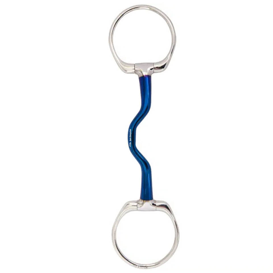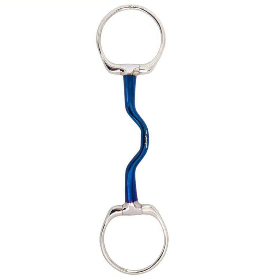 BR Busstrap Unbroken Stainless Steel Horse Bit 14mm with Smooth Blue Mouthpiece Silver Rings High Quality for Soft Contact