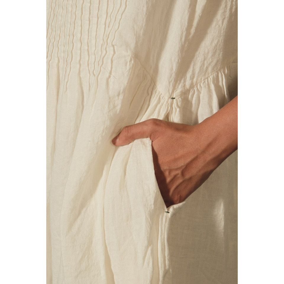 ชุดเดรส BRAHMA - ผ้าลินินลำลอง แต่งระบายสีงาช้าง ไซส์ XS ระบายอากาศได้ดี ลายดอกไม้สไตล์โบฮีเมียน เหมาะสำหรับสาวออฟฟิศ ดีไซน์ธรรมชาติ ODM แต่งระบาย