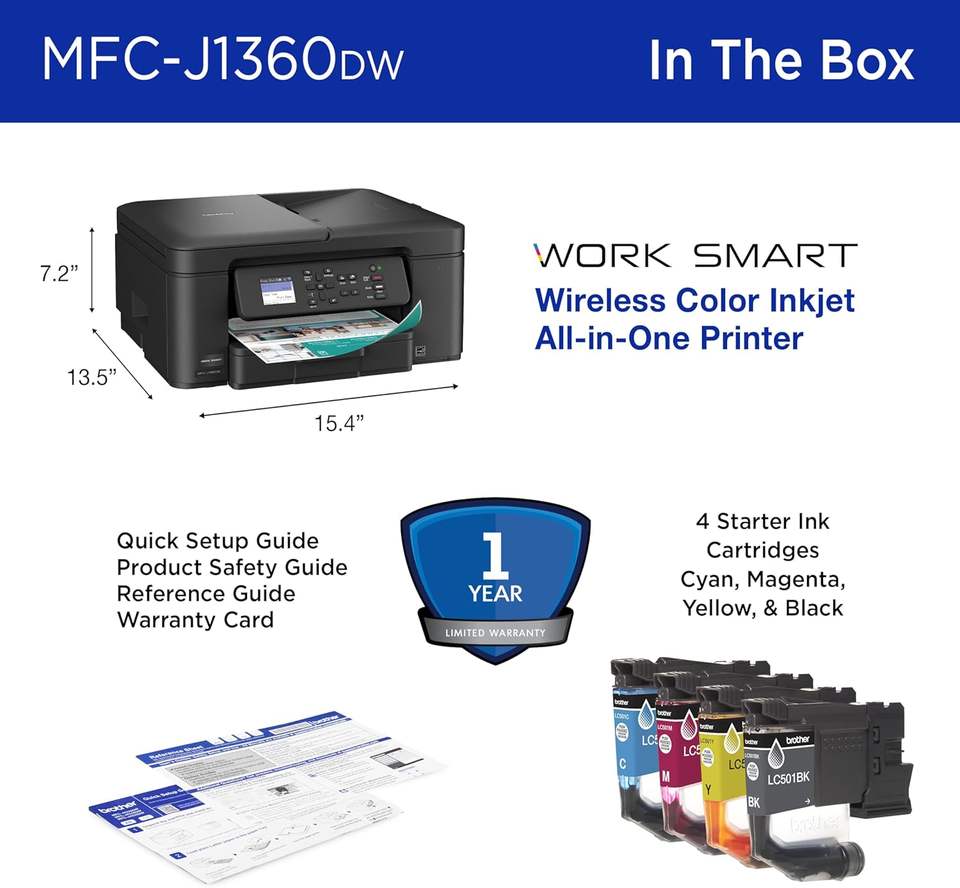 เครื่องพิมพ์อิงค์เจ็ทไร้สายออลอินวัน Brother Work Smart 1360 รุ่นใหม่ล่าสุด พิมพ์สองหน้าอัตโนมัติ ถ่ายเอกสารความเร็วสูง