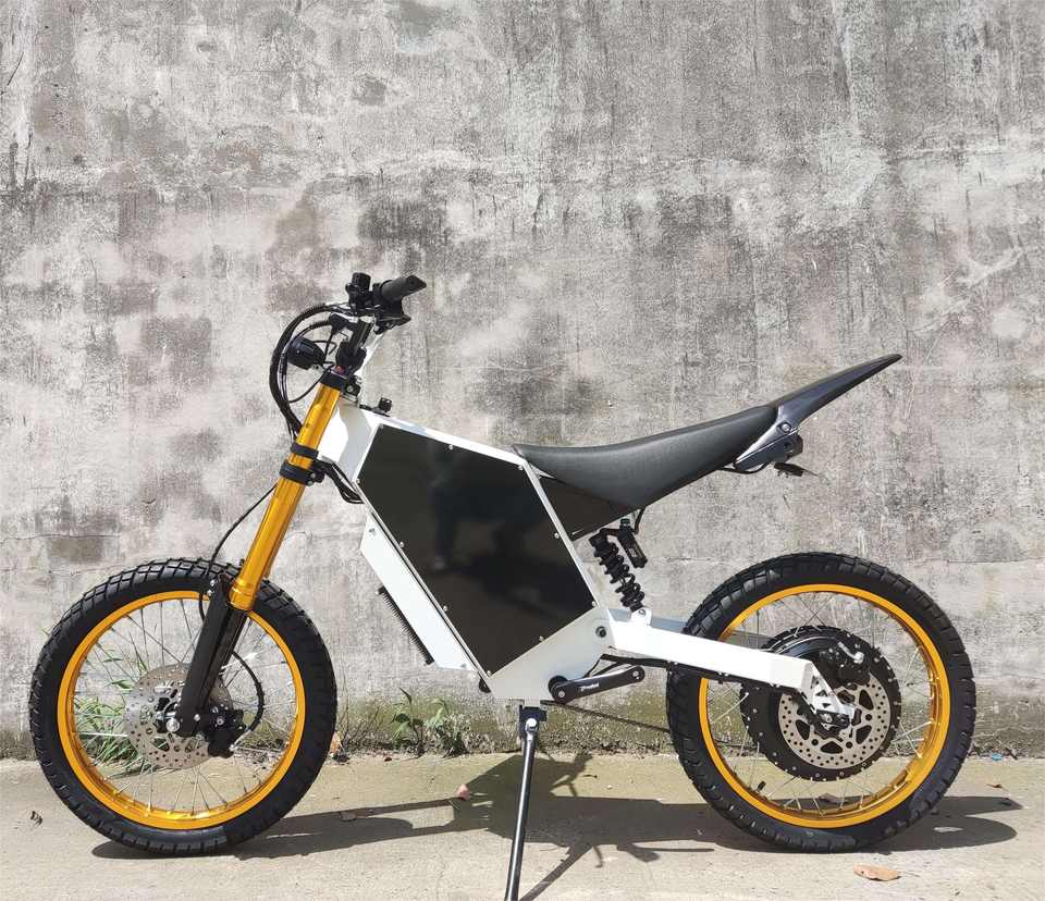 จักรยานไฟฟ้าเสือภูเขาใหม่เอี่ยม รุ่น Dirt Ebike 72V สำหรับขับขี่ออฟโรด พร้อมยางขนาด 21 นิ้ว โครงเหล็ก แบตเตอรี่ลิเธียมในตัว