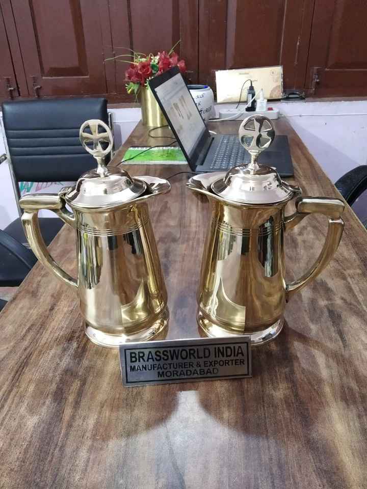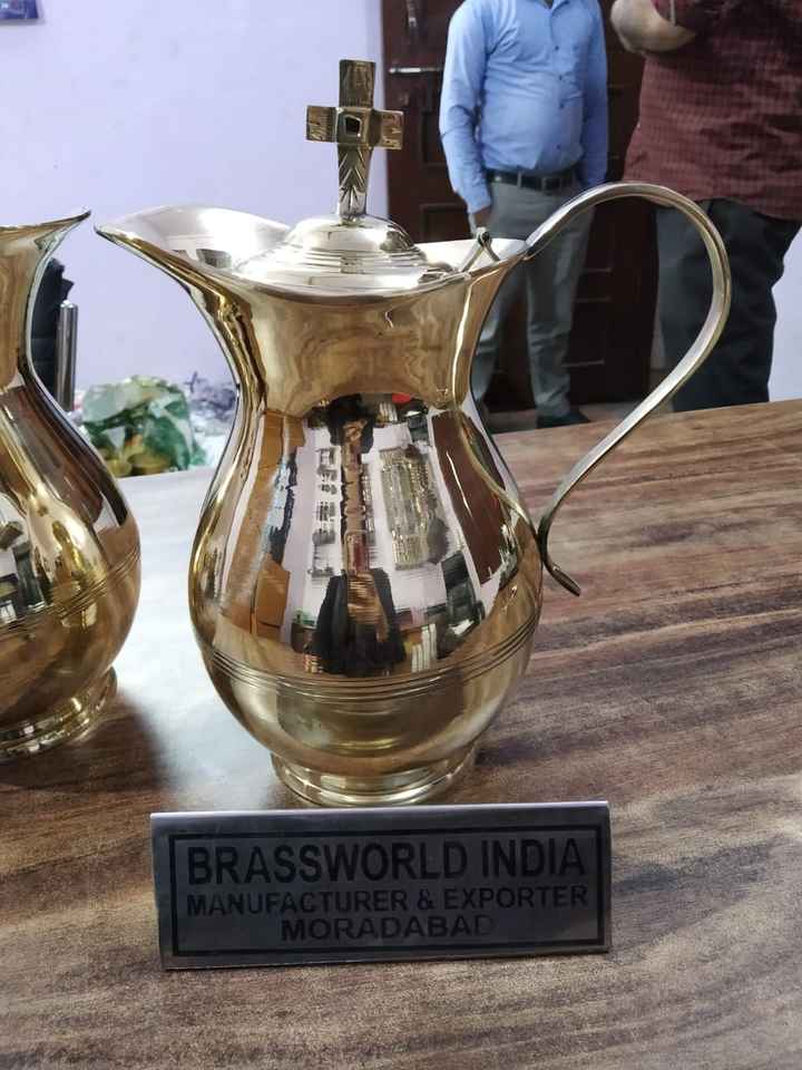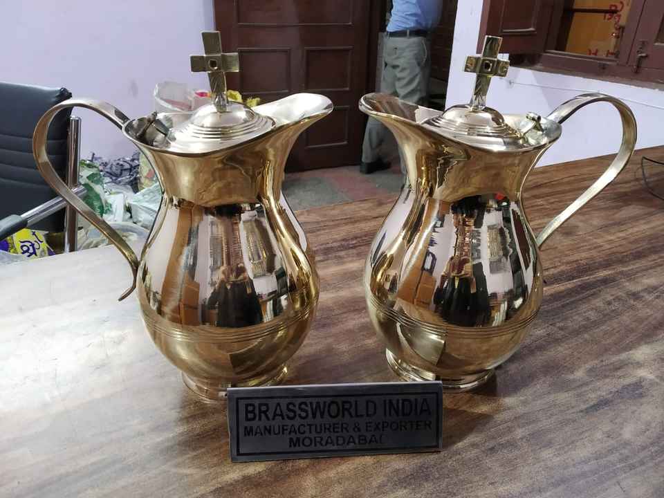 เหยือกมหาสนิทศักดิ์สิทธิ์ทองเหลืองพร้อมอุปกรณ์คริสตจักรข้าม