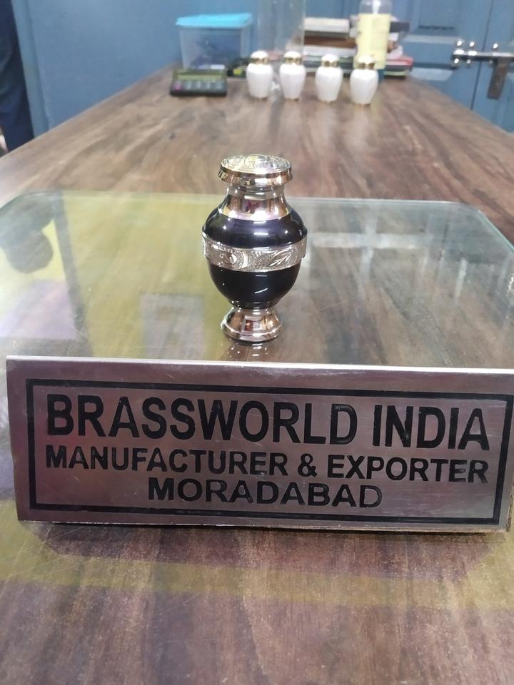 โกศบรรจุอัฐิเด็กทารก สไตล์อเมริกัน ทำจากทองเหลืองสีเงิน ประดับมุกดำ ของใช้สำหรับงานศพ บรัสเวิลด์ อินเดีย