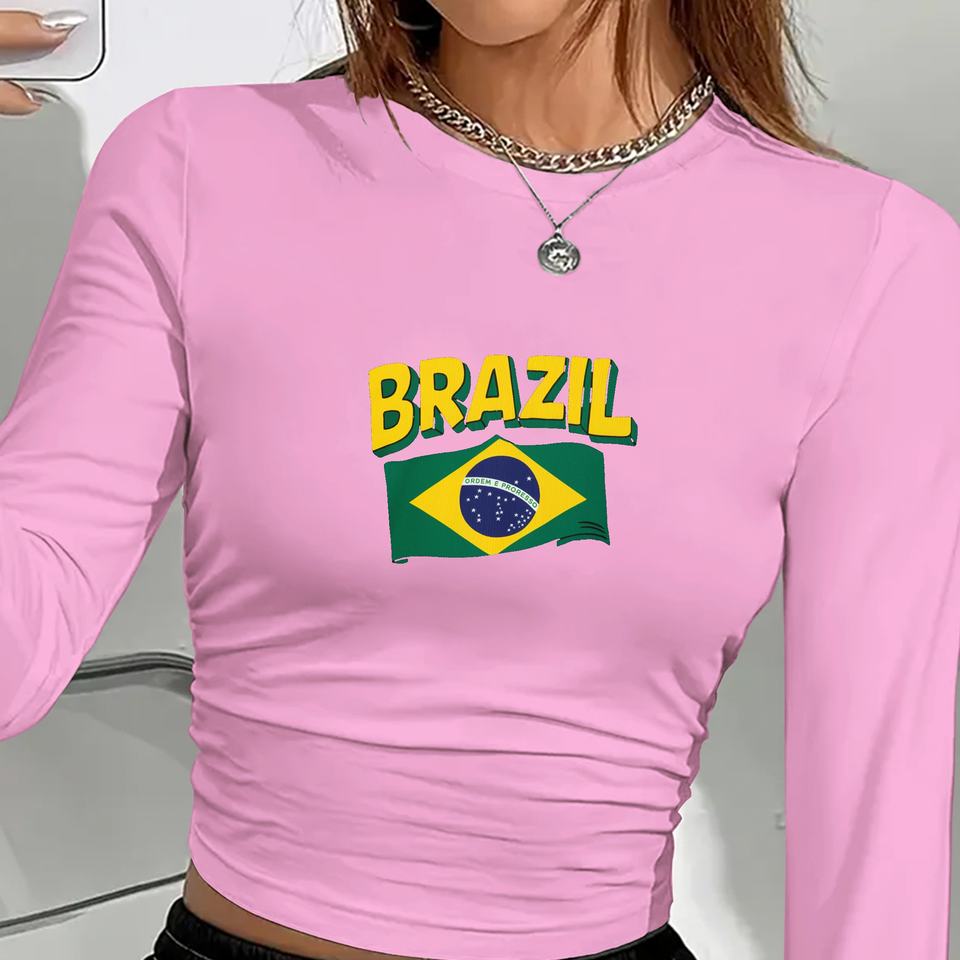 เสื้อแขนยาวบราซิลสีเหลืองสดใสสำหรับผู้หญิง