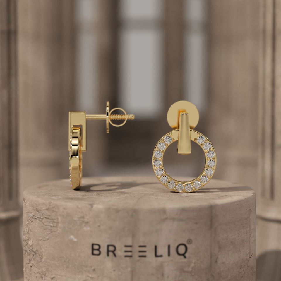 ต่างหู BREELIQ ทองคำ 14K ทรงกลมประดับเพชรแบบวงกลมเปิด น้ำหนัก 0.16 กะรัต ระดับความสะอาด VVS2 สี G เพชรทรงกลมเจียระไน