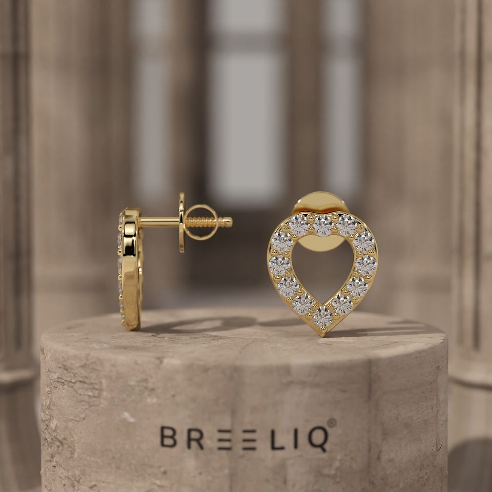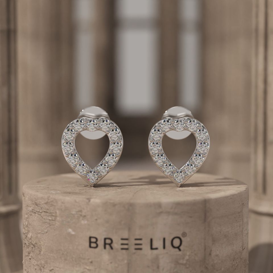 ต่างหูเพชรทรงหัวใจทองคำขาว 14K แบรนด์ BREELIQ หรูหรา ประดับเพชรทรงกลมแบบ Pave Set โรแมนติก