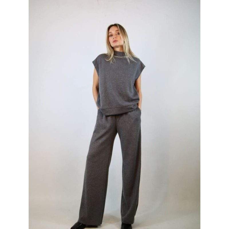 กางเกงลำลองผู้หญิง BRENDA ทรงขากว้าง ผ้าลูกฟูก เอวยางยืด ระบายอากาศได้ดี สีเทา ยับได้
