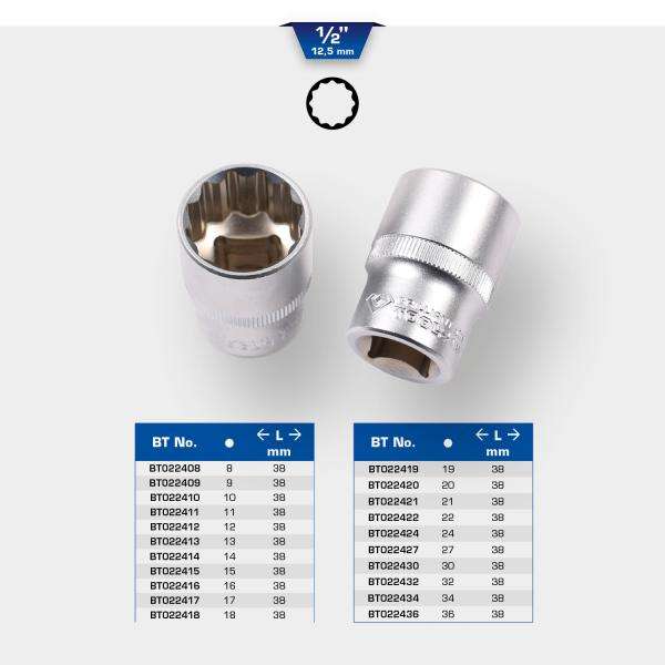 เครื่องมือที่ยอดเยี่ยม-BT022421ซ็อกเก็ต12จุด1/2 ''-EAN ซ็อกเก็ตมือ4042146869192 1/2"