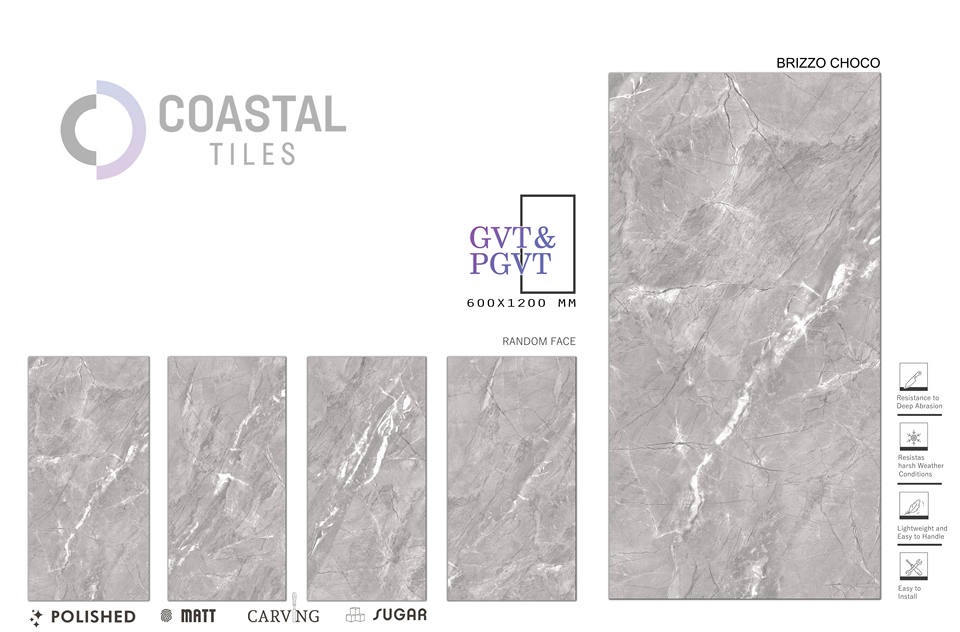 กระเบื้องพอร์ซเลน BRIZZO CHOCO หนา 9 มม. ขนาด 600x1200 มม. ทนทาน กันน้ำ กันไฟ กันลื่น ดีไซน์ทันสมัย คุณภาพพรีเมียม สำหรับตกแต่งผนังและพื้นภายใน