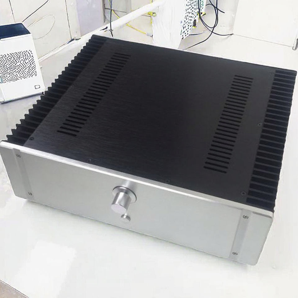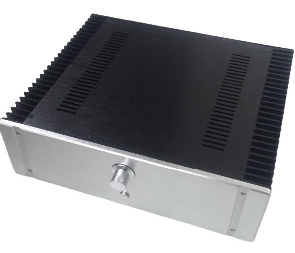 BRZHIFI ราคาขายส่ง 4313-GF-350S-Y กล่องหุ้มเครื่องขยายเสียงไฮไฟ อลูมิเนียมอัลลอยด์ IP65 ผิวปัดเงา พร้อมช่องจ่ายไฟ ระบายความร้อนคู่