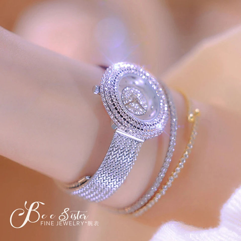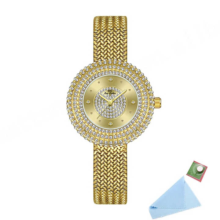BS นาฬิกาน้องสาวของผู้หญิงยอดนิยมนาฬิกาแฟชั่นหรูหราสง่างามสำหรับผู้หญิงชุดนาฬิกาผู้หญิงประดับเพชรสีทองประดับ FA1753