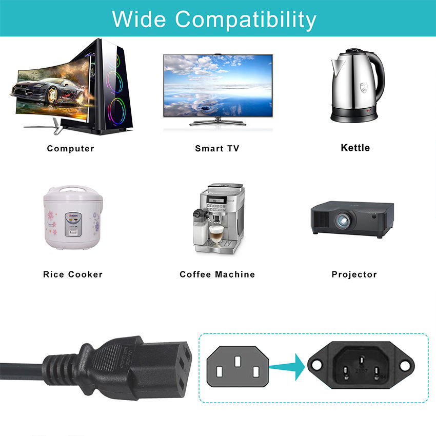 มาตรฐาน BS, ปลั๊ก 3 ขาของสหราชอาณาจักร, ปลั๊ก, C13, ขั้วต่อ IEC, สายไฟ, สายต่อพ่วง AC, อุปกรณ์อิเล็กทรอนิกส์สำหรับผู้บริโภค