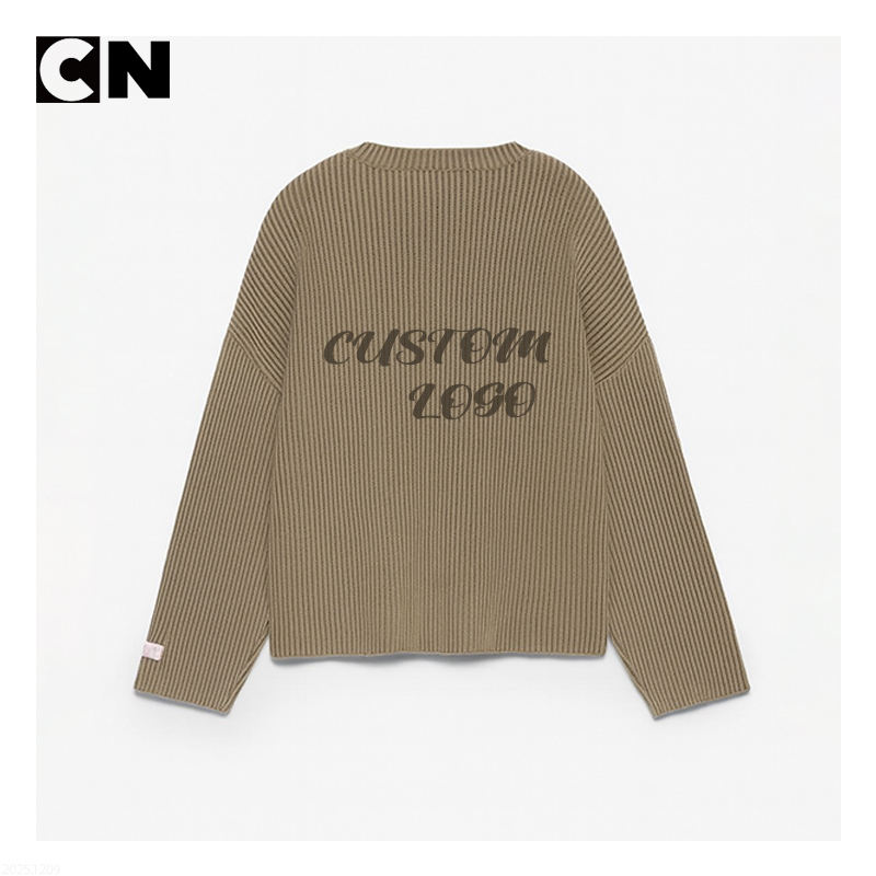 โรงงานผลิตเสื้อสเวตเตอร์ได้รับการรับรองมาตรฐาน BSCI รับผลิตตามแบบ พร้อมปักโลโก้ เสื้อสเวตเตอร์ผู้หญิงแบบลำลอง ลายริบ วินเทจ ลายตัวอักษร ถักแบบแจ็คการ์ด ทรงพอดีตัว เสื้อสเวตเตอร์ไหมพรมสำหรับฤดูหนาว