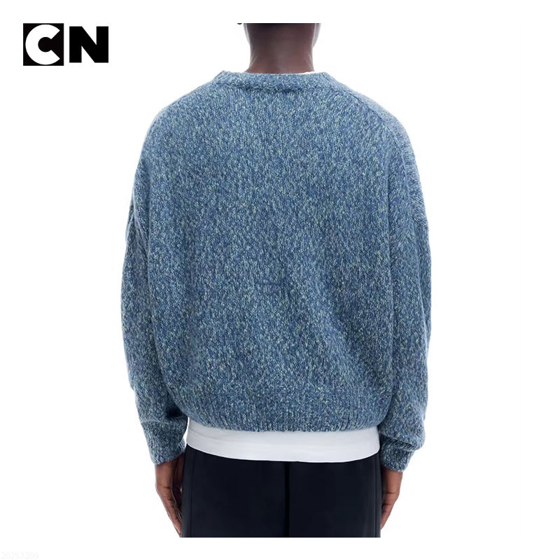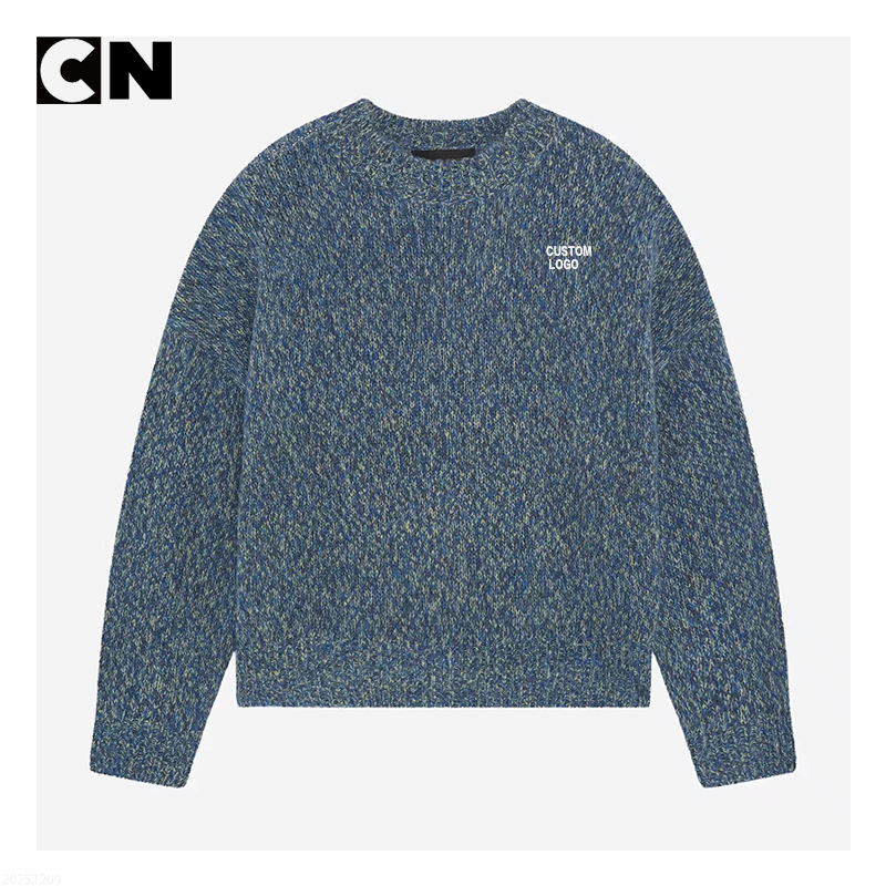 โรงงานผลิตเสื้อสเวตเตอร์ได้รับการรับรองมาตรฐาน BSCI รับผลิตตามแบบ พร้อมปักโลโก้ เสื้อสเวตเตอร์ผู้ชาย คอกลม แขนยาว ผ้าขนสัตว์ผสมฝ้าย ทรงครอป แบบลำลอง ถักนิตติ้ง เหมาะสำหรับฤดูหนาว