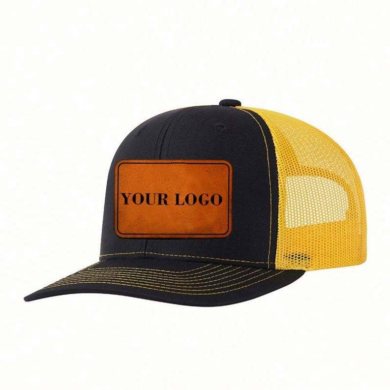 หมวกแก๊ปทรงทรัคเกอร์ 112 รุ่นพรีเมียมสำหรับผู้ชาย คุณภาพสูง ผลิตตามมาตรฐาน BSCI ผ้าคอตตอนทวิลสีเขียว 6 แผง ตกแต่งด้วยหนังปะโลโก้
