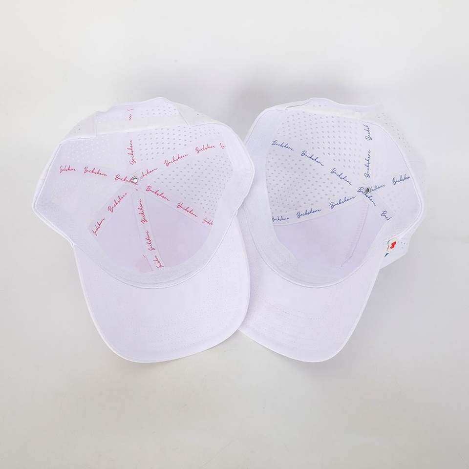 Bsci หมวกเบสบอลมีรูตัดด้วยเลเซอร์โพลีเอสเตอร์สีขาว