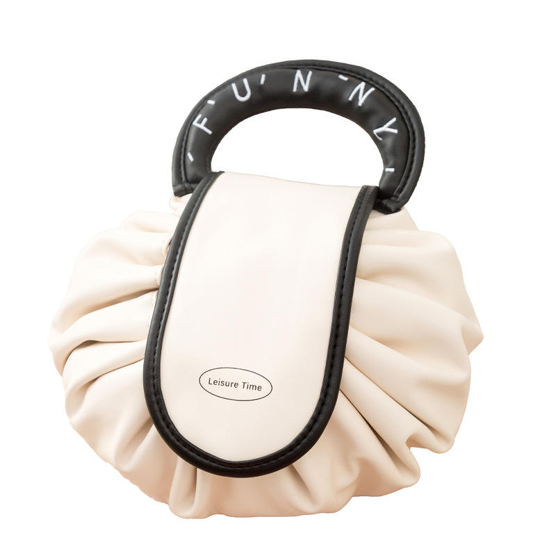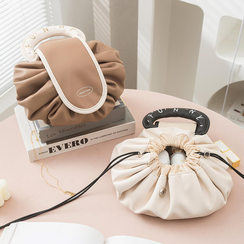 กระเป๋าเครื่องสำอางสำหรับคนขี้เกียจแบบมีซิปปิดแบบพกพามีซิปลายตัวอักษรทำจาก PU โลโก้ออกแบบได้ตามต้องการ