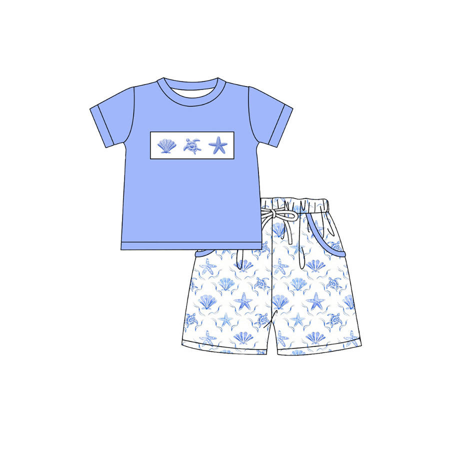 ชุดเสื้อผ้าเด็กผู้ชายสีน้ำเงินพิมพ์ลาย BSSO1981 แบบสั่งทำพิเศษ ชุดฤดูร้อน ขายส่ง
