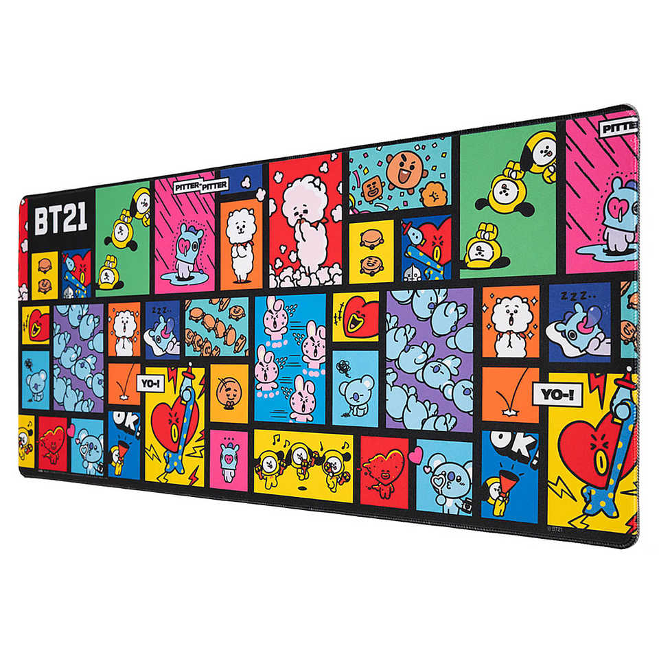 แผ่นรองเมาส์ BT21 XL พร้อมระบบชาร์จไร้สาย ลายพิมพ์ทรงสี่เหลี่ยม คุณสมบัติให้ความร้อน กันน้ำ อุปกรณ์เสริมคอมพิวเตอร์สำหรับคีย์บอร์ด