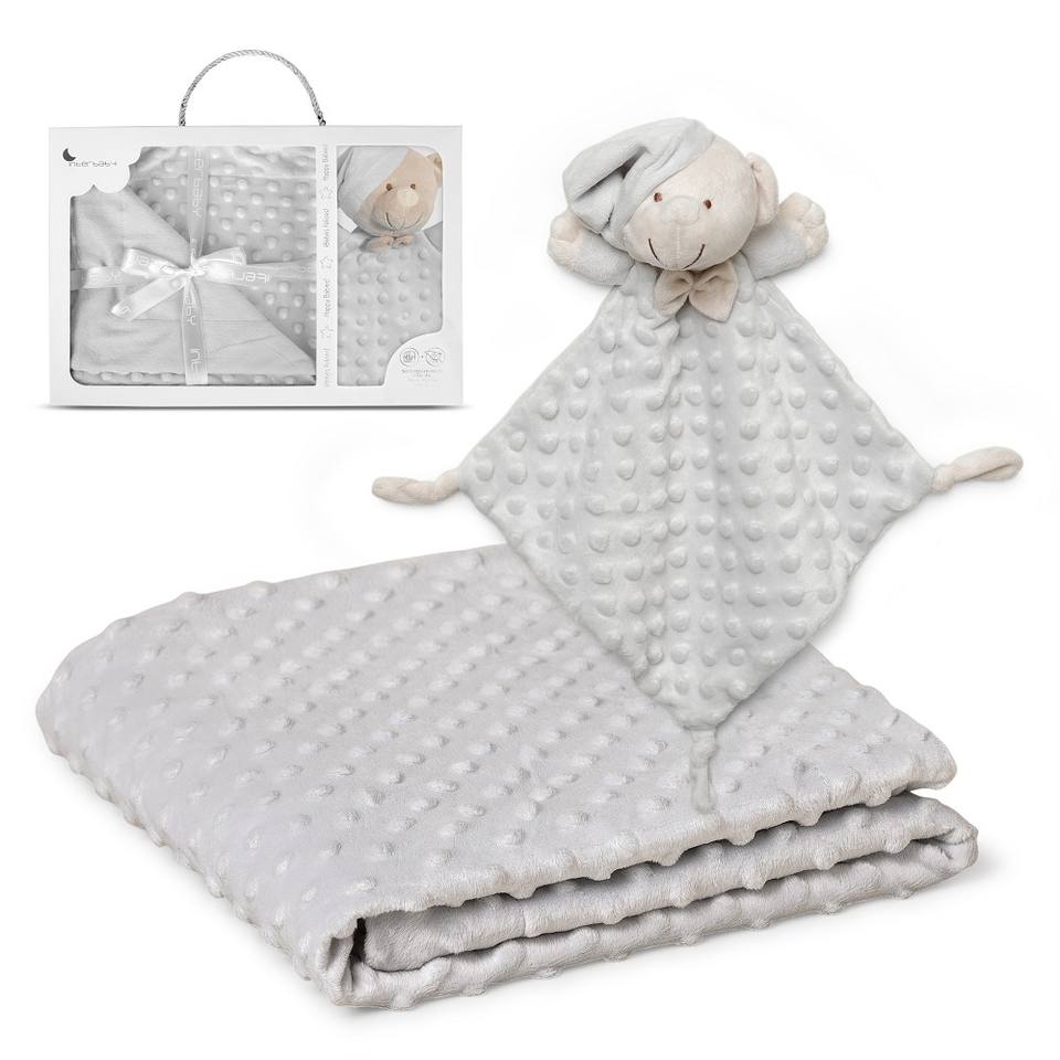 BUBBLE BLANKET-80 X 110 Gray Dot Pattern Woven Technics Coral Flecce + DOUDOU 28X17 MOD. OSITO