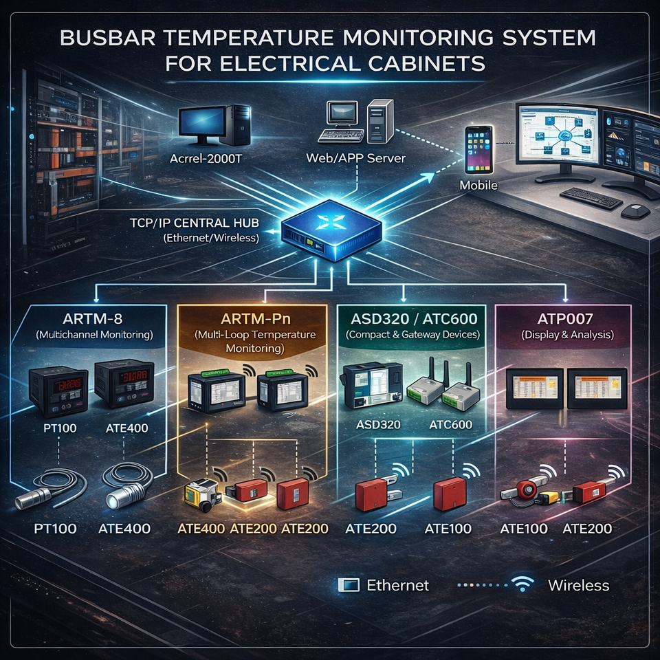 ระบบตรวจสอบอุณหภูมิบัสบาร์สำหรับตู้ไฟฟ้า แพลตฟอร์มตรวจสอบอุณหภูมิอุตสาหกรรม | รับผลิตแบบ OEM