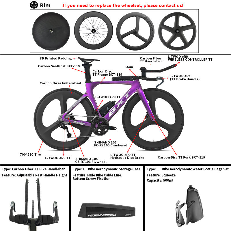 จักรยานไตรกีฬา BXT TT-119 คาร์บอนไฟเบอร์ 2x12 สปีด ระบบเบรกไฮดรอลิก Di2 สายเบรกภายในตัวถัง คาร์บอน 88 มม. จักรยานไทม์ไทรอัล