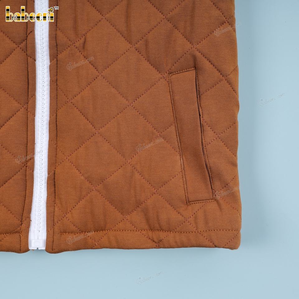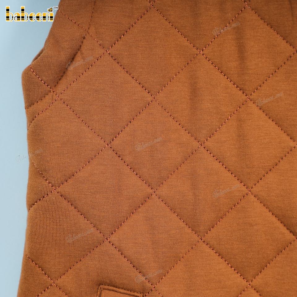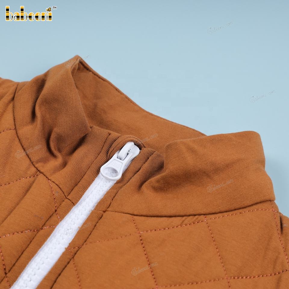 เสื้อเชิ้ตเด็กชายสีน้ำตาลแบบลำลองเป็นมิตรกับสิ่งแวดล้อม แบรนด์ Babeeni พร้อมปักชื่อแบบโมโนแกรม ได้รับการรับรองมาตรฐาน OEKO-TEX คอเต่า ผลิตตามแบบ ODM OEM รับผลิตตามสั่ง ขายส่ง