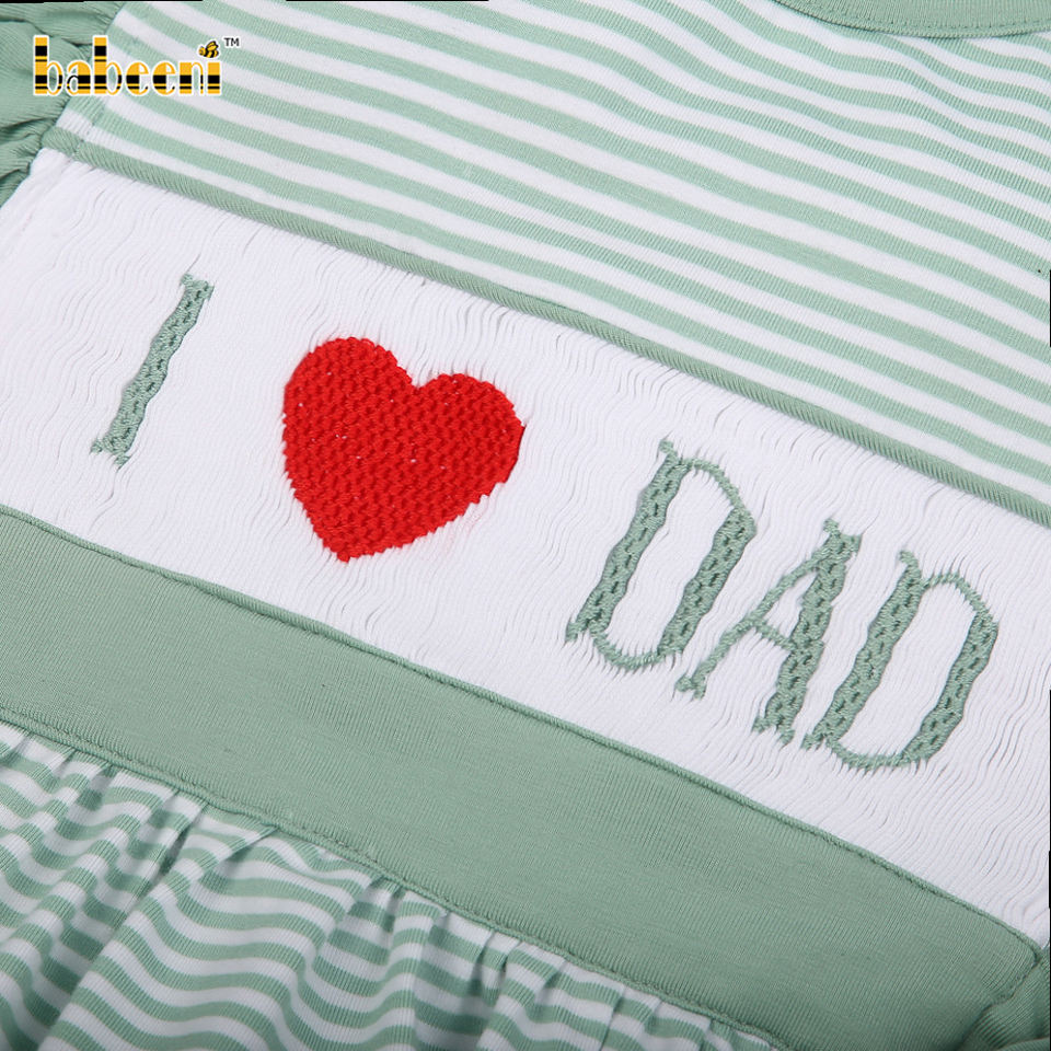 ชุดรอมเปอร์เด็กผู้หญิงแขนสั้นลายปักมือ Babeeni I Love Dad ผ้าฝ้าย 100% สำหรับฤดูใบไม้ร่วง ลายตัวการ์ตูน ผ้าซีร์ซัคเกอร์ ติดกระดุม OEKO-TEX