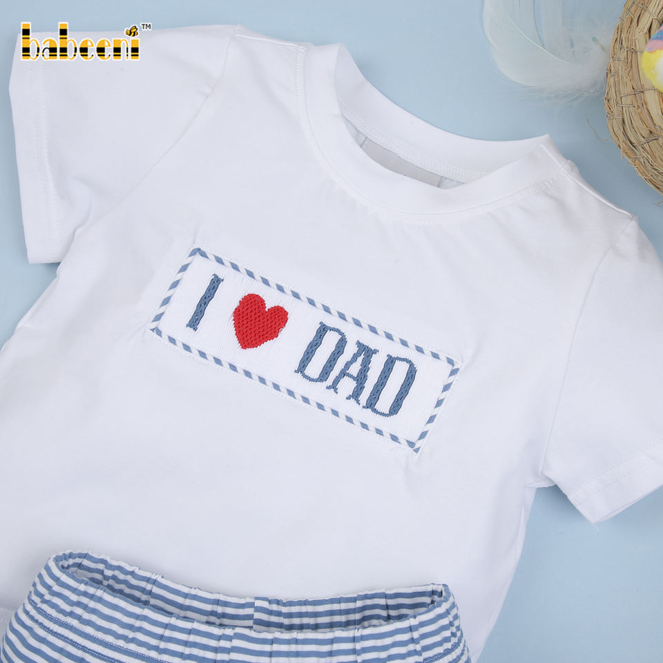 ชุดเสื้อผ้าเด็กผู้ชาย Babeeni ODM หรูหรา ปักมือ ผ้าฝ้ายปลอดสารพิษ ได้รับการรับรอง OEKO-TEX ลายสัตว์ ดีไซน์ 'ฉันรักพ่อ'